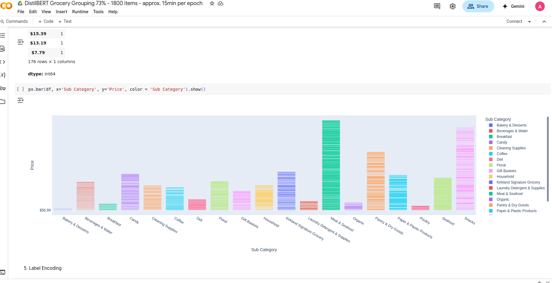 Google Colab Notebook using dataset from Kaggle(1800 items). Huggingface-transformers, matplotlib, PyTorch(AdamW optimization), sklearn, pandas.